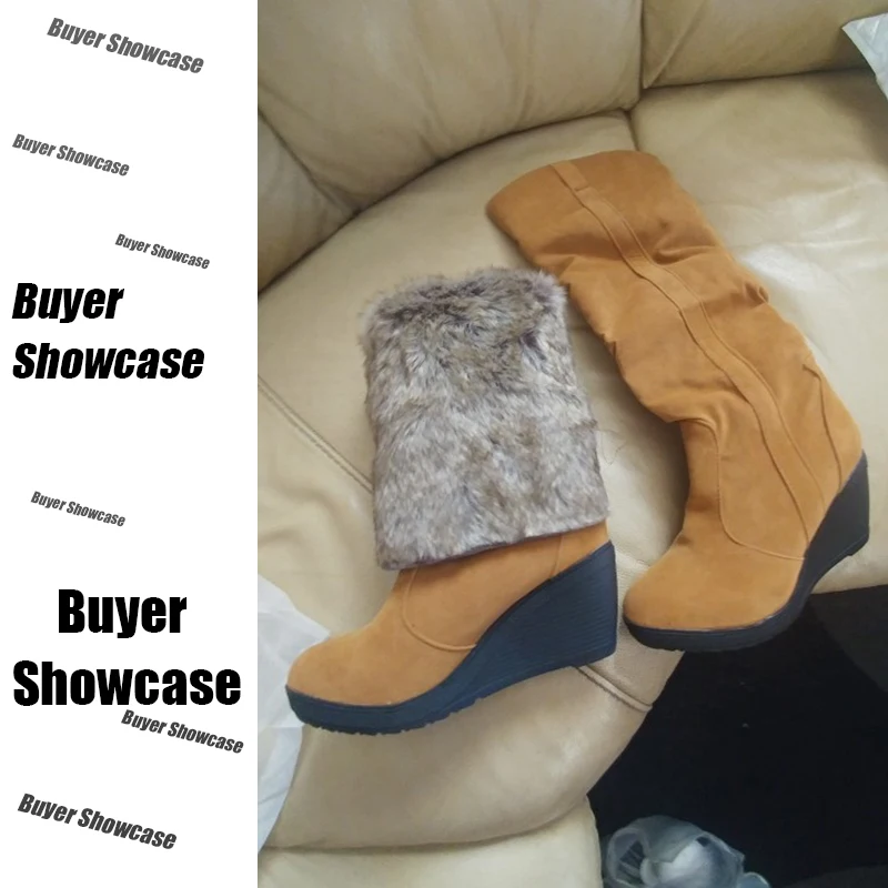 Большой размер 43 обувь на теплом меху 3 вида стилей; Зимние ботинки; Женские туфли на платформе; Туфли на танкетке; Модные INS челнока зимние ботинки до середины икры женские