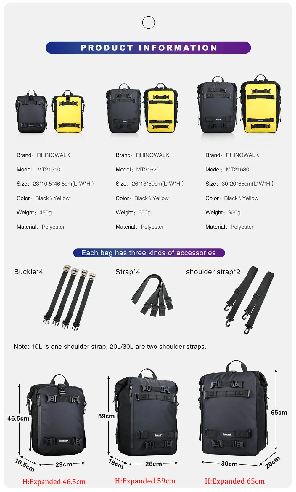 Мотоциклетная задняя Сумка Rhinowalk, 30 л, 20 л, 10 л, боковая зад...