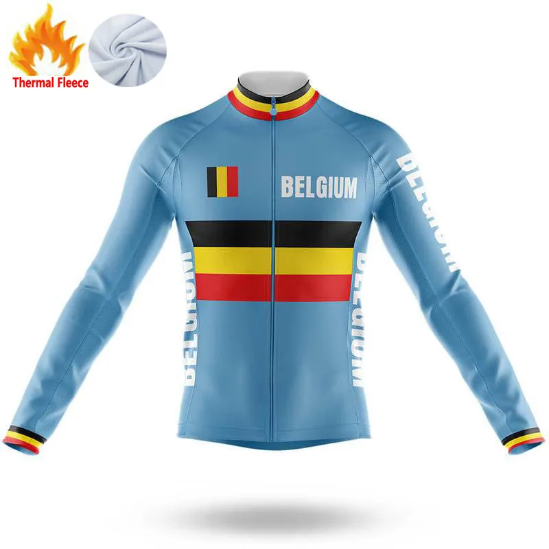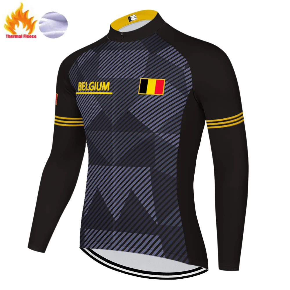 Коллекция Бельгии 2021, Зимняя Теплая Флисовая велосипедная футболка с национальным флагом и длинными рукавами, Мужская одежда, одежда для активного отдыха