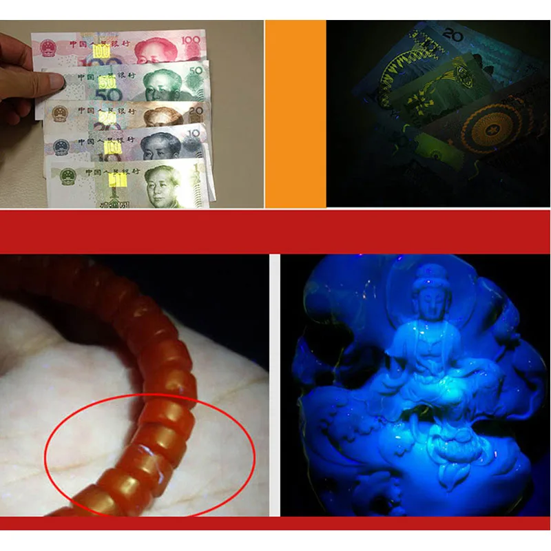 Особенности: Профессиональный ультрафиолетовый УФ-светодиод 365 нм, освещение белого цветаЭтот фонарик изготовлен из высококачественного алюминиевого сплава и имеет прочную конструкциюМожет использоваться для обнаружения наличных денег, молитвенных бусин, следов судебной экспертизы, может светильник ить скорпиона ночью, на рыбалке и т. д.Уф может использоваться для обнаружения флуоресцентных веществ, длины волны 365 нм УФ для обнаружения отпечатков пальцев в крови и других жидкостей для организма, а также для обнаружения следов от выстрела