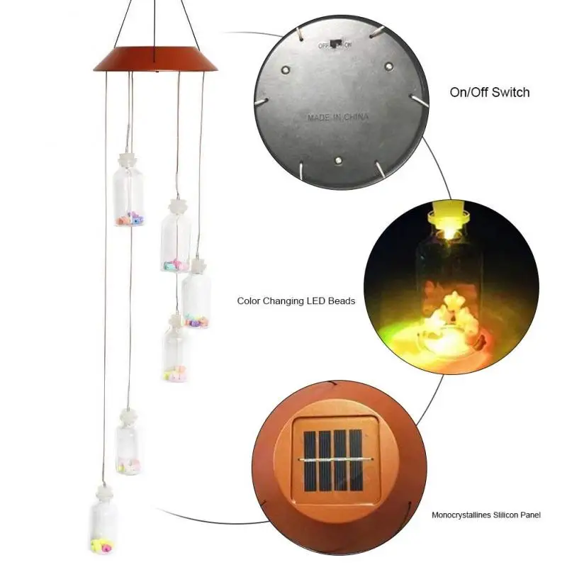 Комплекпосылка ция:1X Солнечный меняющий цвет светильник ряной колокольчик