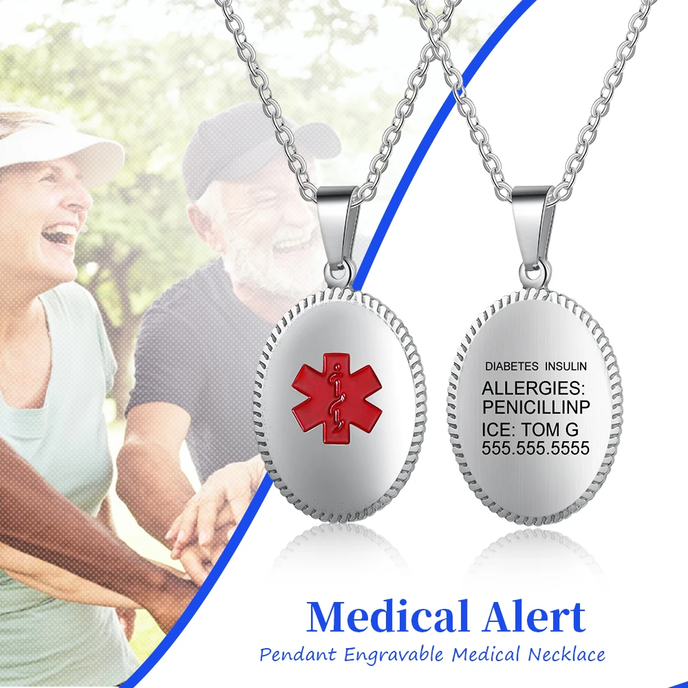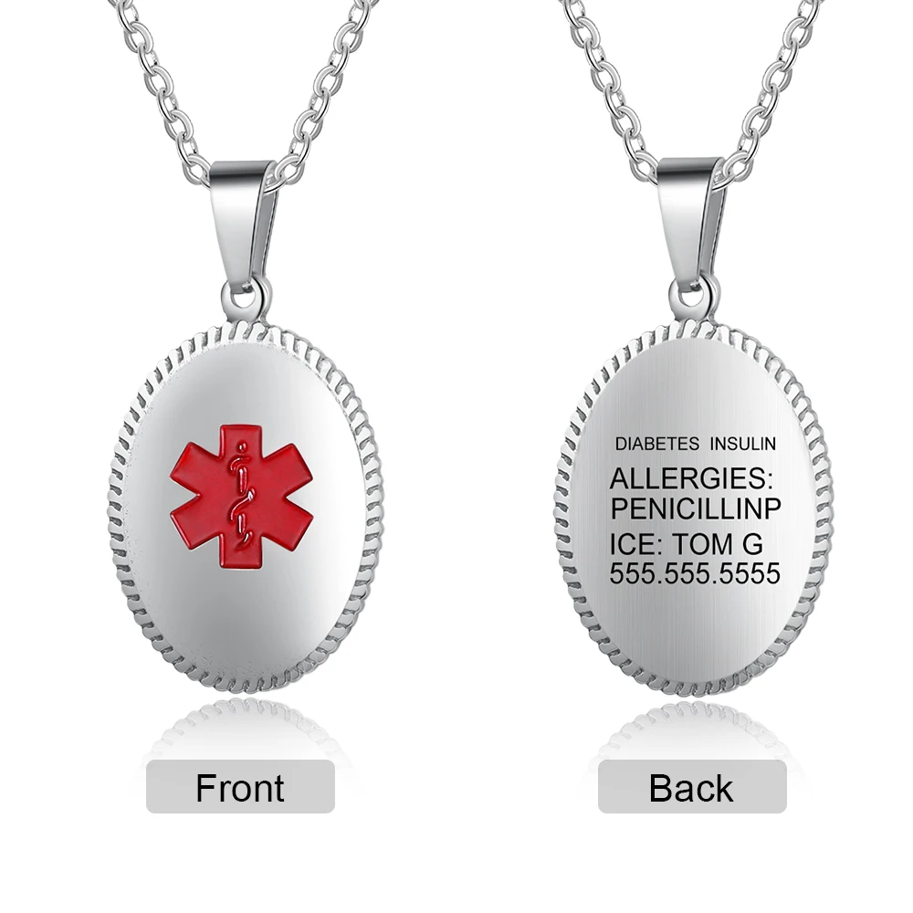 Ожерелья на заказ бирка из нержавеющей стали с медицинским оповещением, Круглый Кулон, индивидуальная аварийная бижутерия для женщин, гравировочный подарок