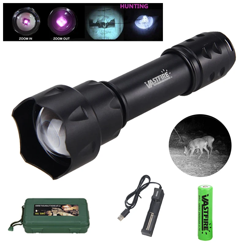 200 ярдов T20 ИК-фонарик 940nm ночного видения масштабируемый фонарь открытый светодиодный тактический охотничий фонарик + 18650 + зарядное устройство + крепление + переключатель + коробка