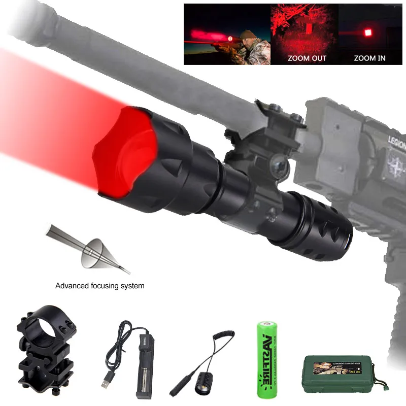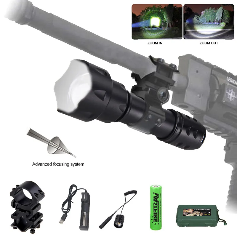 T20 Тактический Масштабируемые Светильник XM-L T6, цвета: красный, зеленый, хищник Охота Фонари 400 ярдов светодиодный регулируемый фокус винтовка пистолет светильник