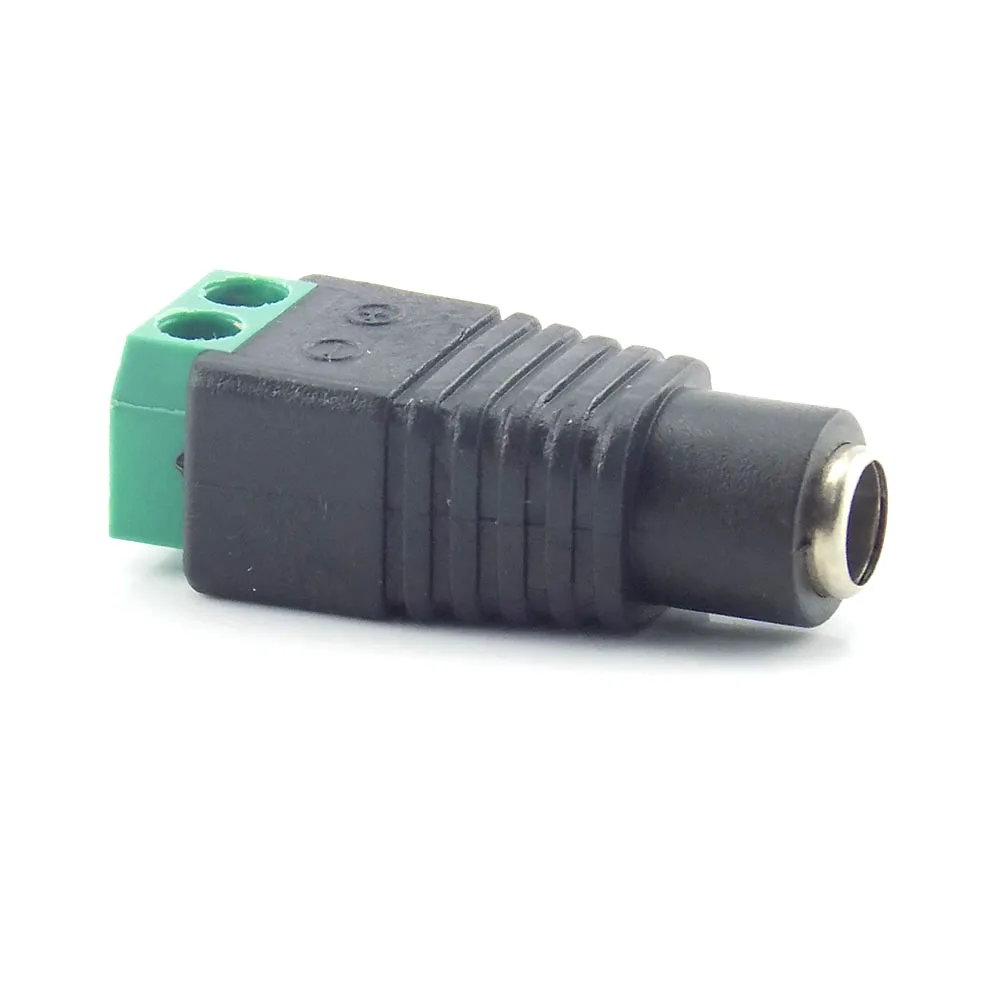Это 2,1x5,5 мм Мощность разъем имеет одну Мощность разъема Вилка папа для постоянного тока на другой конец терминал для камеры видеонаблюдения.