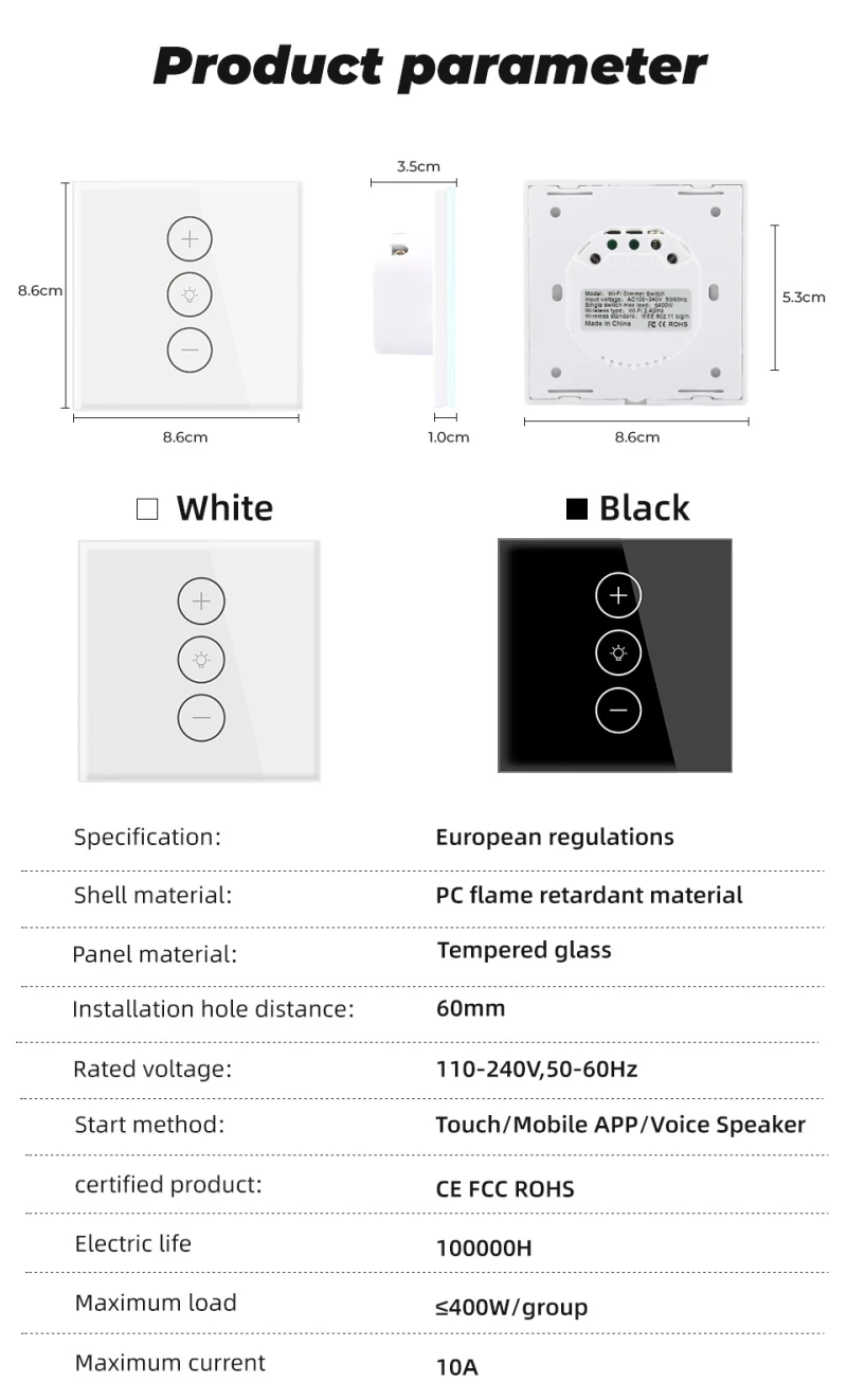 Умный Wi-Fi настенный бесступенчатый диммер Tuya со стеклянной панелью, беспроводной переключатель регулировки яркости голосового управления для AlexaGoogle Assistant