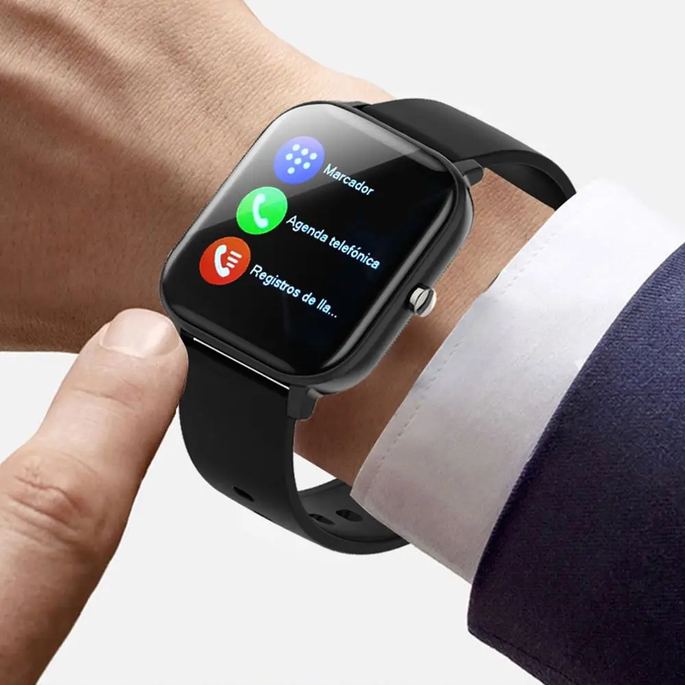 Полноэкранный цветной сенсорный экран HD, экран 1,54 дюйма в сочетании с прозрачным изогнутым стеклом 2.5D делает каждый яркий экран потрясающим. Модный Индивидуальный циферблат, установите свою индивидуальность по своему усмотрению Подключение к мобильный телефон, умные часы могут ответить, когда на мобильный телефон поступает входящий вызов, напоминание по SMS, умные часы есть соответствующие напоминания, вы можете просмотреть важную информацию, подняв руку Водонепроницаемость IP X7, носите его в повседневной жизни, не бойтесь воды, не забирайте его при мытье рук, смывании или попадании под дождь Несколько спортивных режимов, включая 11 видов спортивных режимов, таких как бег, теннис, Велоспорт, плавание, альпинизм и т. д., для записи научных видов спорта Пользовательские обои, после того, как мобильный телефон подключен к приложению, вы можете загрузить Различные изысканные циферблаты из приложения, и вы также можете преобразовать пейзажные снимки в фон циферблата, И переключиться на свой любимый стиль для удовлетворения разнообразных потребностей пользователей