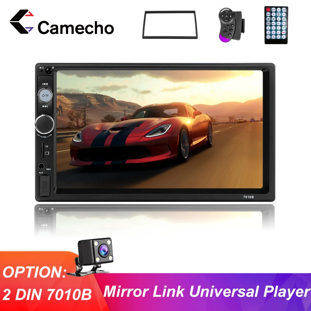 Автомагнитола Camecho 2Din с сенсорным экраном 7 дюймов, MP5-плеер с поддержкой Bluetooth, USB, MirrorLink, с камерой заднего вида