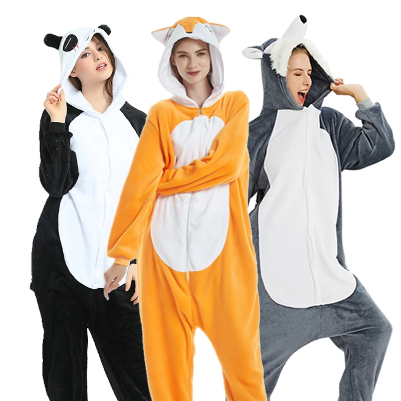 Фланелевые пижамы-комбинезоны в виде животных для взрослых, женская...
