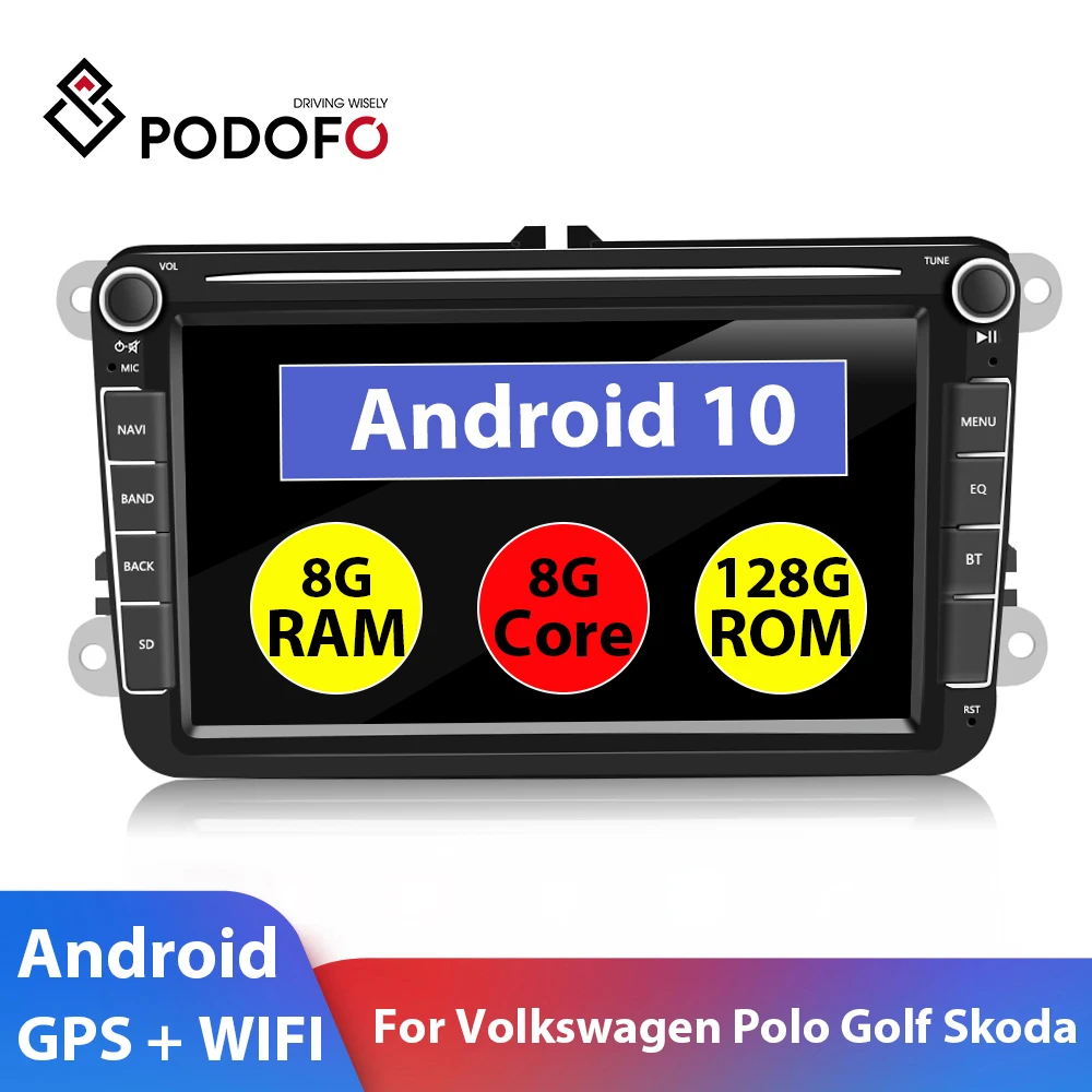 Podofo 2 Din Android 10 8 + 128 GPS Автомобильный мультимедийный плеер Авто радио для VWVolkswagenGolfPoloPassatb7b6leonSkoda