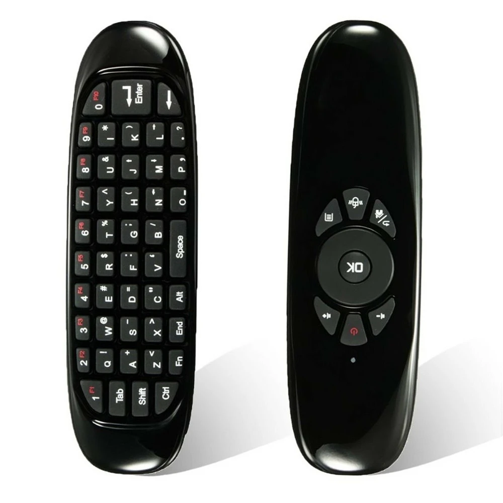 Описание товара: C120-это контроллер на основе гироскопа с комбинированной функцией мыши, клавиатуры и мультимедийного дистанционного управления. Уникальный и удобный пульт дистанционного управления, который может управлять вашим компьютером, Android TV box и телеприставкой. Идеально подходит для управления устройствами с комфортом вашего дивана. Это не только для домашнего использования, но и идеально подходит для использования в бизнесе; Возможность контролировать ваши презентации и лекции на больших экранах или проекторах до 10 метров. Полная QWERTY клавиатура позволяет удобно печатать с того же устройства. С приемником USB 2,0, он совместим с системами Windows, MAC OS, Android (boxes), Linux. Просто подключите его, и вы все в комплекте! Информация о продукте: -Элегантный и эргономичный дизайн, легкий и легко держать -4-в-1 Функции: дистанционный пульт + мышь + клавиатура + игра рукоятки -Работает плавно с алгоритмом анти-встряхивания для лучшего управления курсором -2,4G беспроводной, рабочее расстояние до 10 м без препятствий -Поставляется с микроприемником USB plug-and-play -Встроенная перезаряжаемая батарея, может заряжаться через прилагаемый usb-кабель PS: не поддерживает ОС Windows 7 64 бит