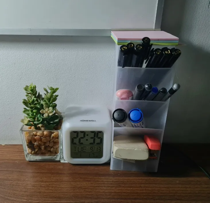 Органайзер для ручек довольно хорош! Я купил самый большой. Материал жесткий и хорошо поддерживает свою форму, мне нравятся отсеки, потому что я могу скомбинировать мои карандаши, как бы то ни было (но мой пост 7,5 × 7,5 см-он не подходит) И цвет легко сочетается с моим рабочим пространством! Я полностью рекомендую его.