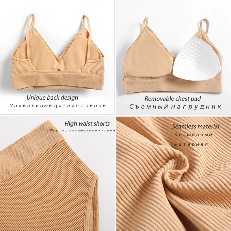 Комплект нижнего белья женский бесшовный из мягкого топа и трусов с высокой талией, 6 цветов