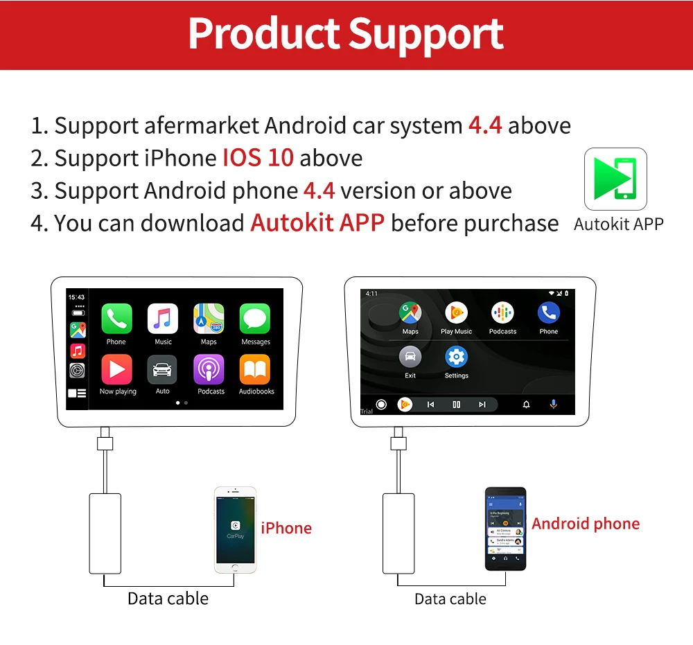 1. Этот продукт поддерживает только систему Android car/radio/navigation/car display, не поддерживает оригинальную автомобильную систему, пожалуйста, подтвердите, является ли ваш автомобиль системой Android 4,4 выше, прежде чем покупать
