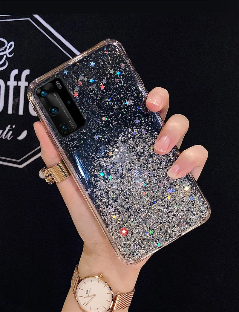 Силиконовый чехол с блестками для Huawei P20P30 LitePro, Y5, Y6, Y7...