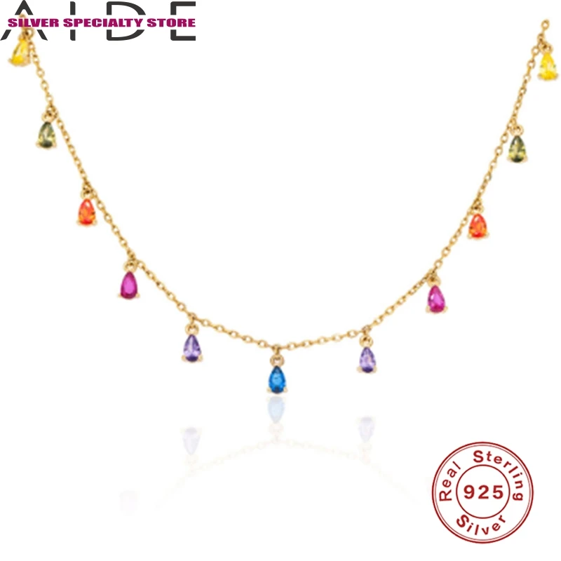 AIDE модные циркониевые девичьи Серьги Цепочка с кулоном, 925 серебряное ожерелье для женщин 2020 ювелирные изделия колье ожерелье в стиле Collares Bijoux (украшения своими руками) воротник