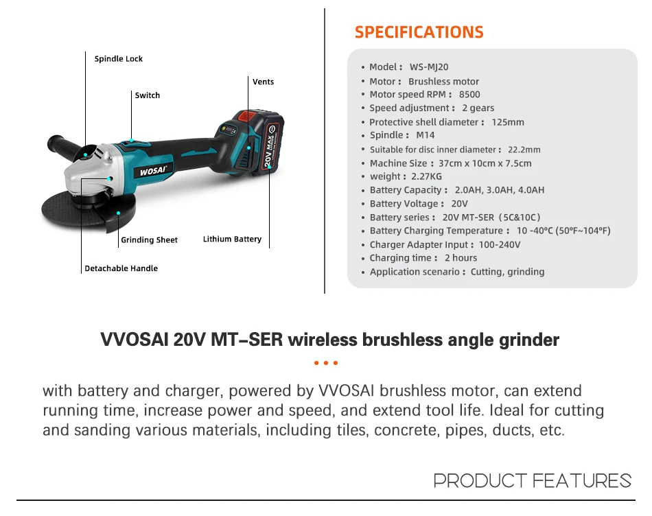 ушм. пришла с заряжен.акум. поставил обдирочный круг из проволки поработал. Если сравнивать с макитой на 720Вт. то Wosai 8500rmp слабей. Раньше у меня небыло на акумах ушм. Пользовал сетевые. По первым впечатлениям что гантэлю в руки взял. Наверно надо было акум поменьше взять. Качество отличное.Упаковано грамотно. Продовца рекомендую. 5+