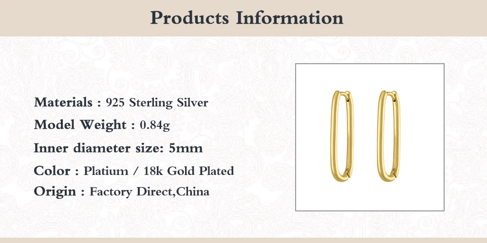 Серьги женские U-образные из серебра 100% пробы, 925 пробы