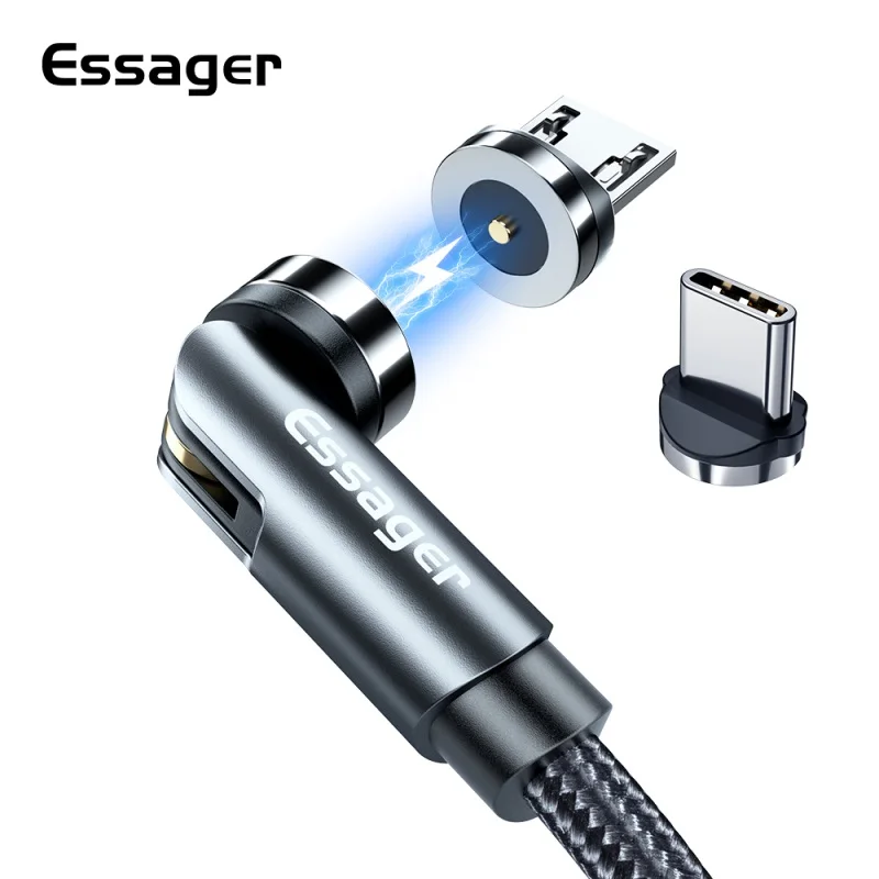 Магнитный кабель Essager с поворотом на 540 градусов, Micro USB Тип C, зарядный кабель для Samsung, зарядное устройство, быстрый Магнитный кабель, USB C шнур, провода, адаптер