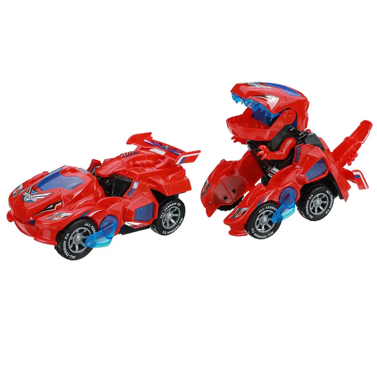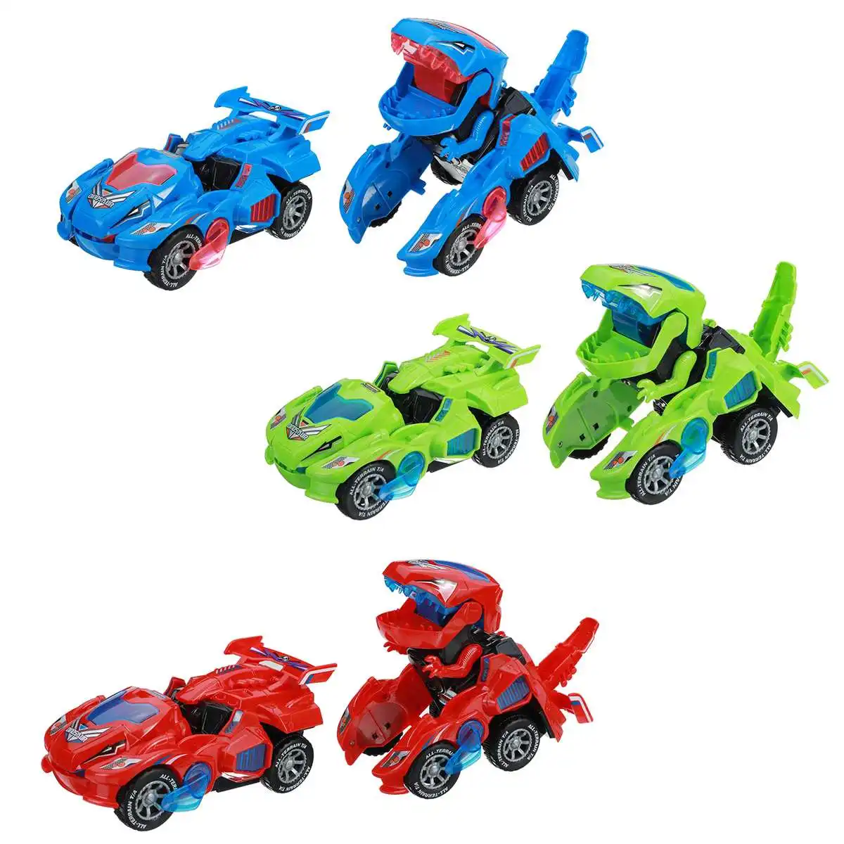 Технические характеристики:Цвета: синий, красный, зеленыйРазмер:Автомобиль: прибл. X x 10 смДинозавров: approx.8x14x12cmПитание: 3 батарейки AA (не входят в комплект)Материал: АБС-пластикФункция светодиодный, звук и деформацияВозраст: 3 и более