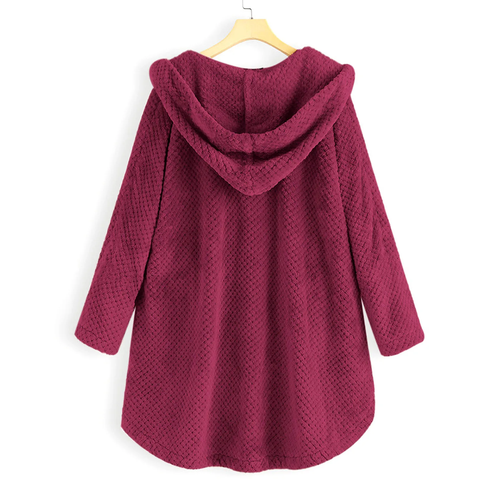 Размера плюс Для женщин флис Нерегулярные Длинный рукав; пуговицы карман пальто с капюшоном