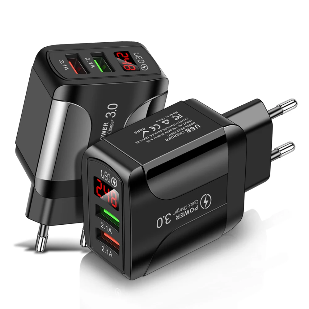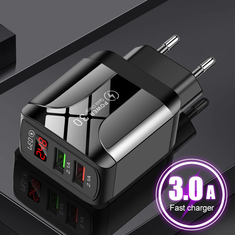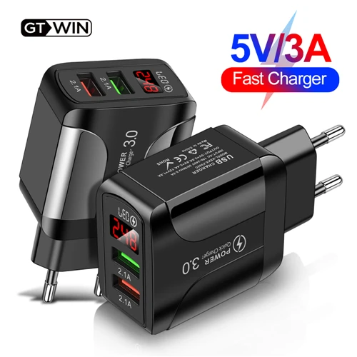 Зарядное устройство GTWIN QC 3,0 USB со светодиодным цифровым дисплеем и поддержкой быстрой зарядки