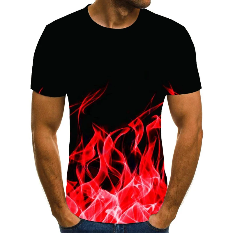 Новинка 2020, футболка с рисунком пламени, Мужская футболка с 3D пр...