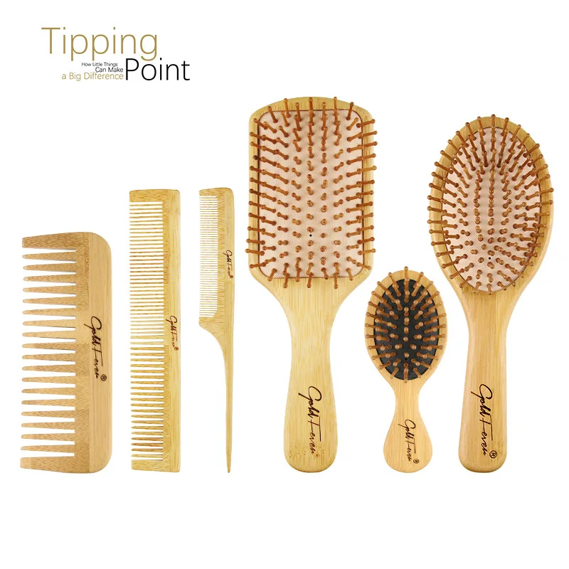 Расческа деревянная бамбуковая, массаж на воздушной подушке, гребень с широкими зубьями, с двумя головками, с заостренным хвостом, профессиональная расческа для укладки волос