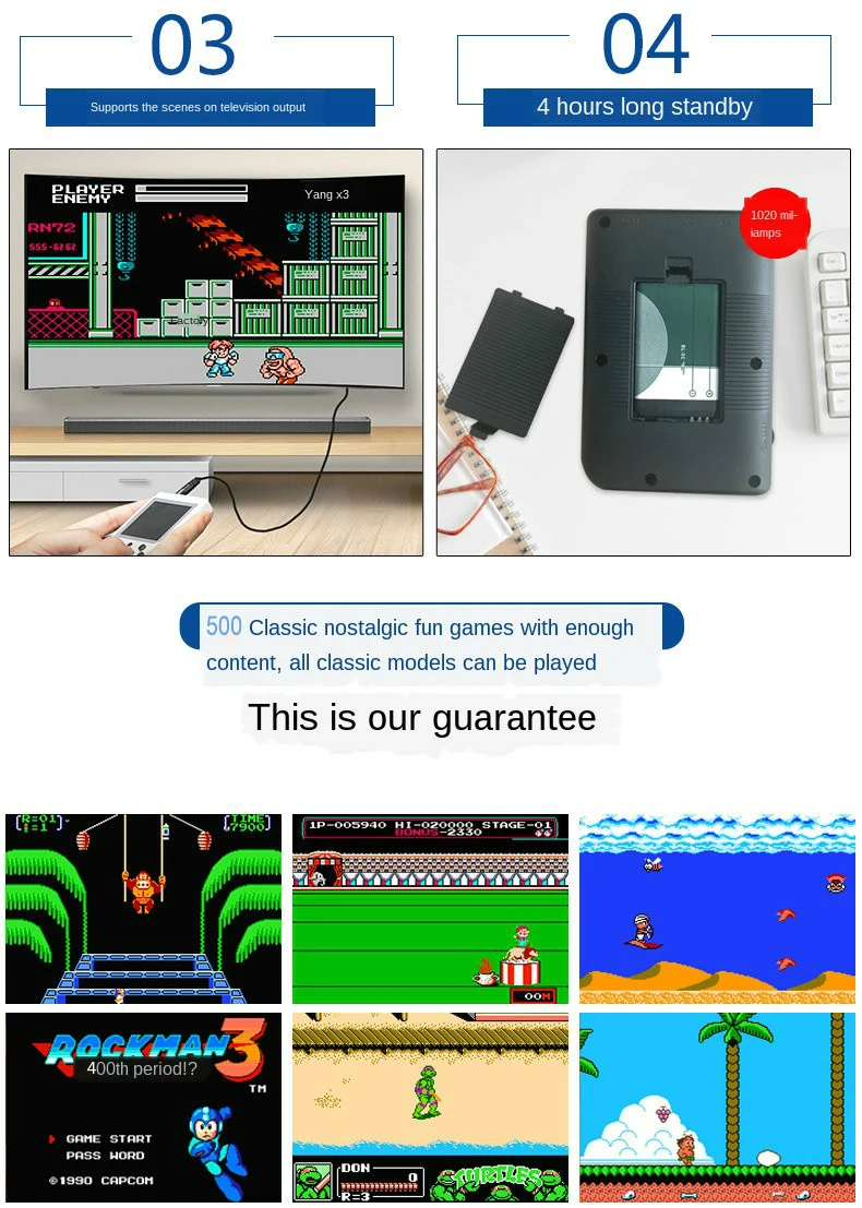 8 бит 3,0 "портативные игровые плееры ретро мини-консоль детская игровая консоль Встроенный 500 игр поддержка подключения ТВ AV