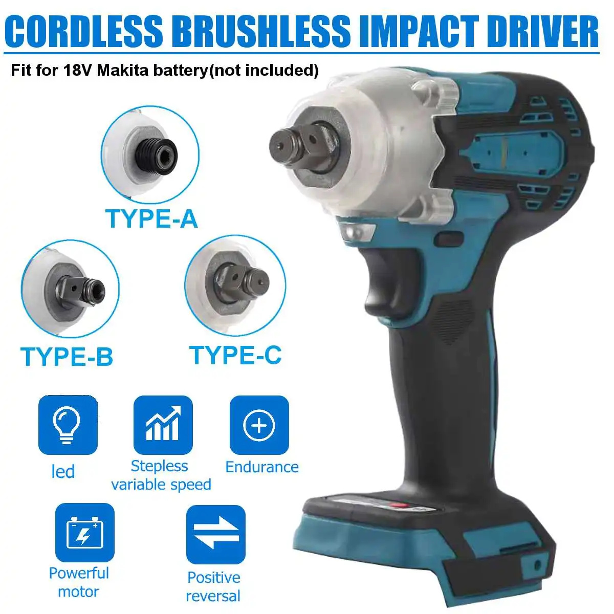 18В 800н. М. Литий-ионный бесщеточный беспроводной 1/2 ''ударный ключ сменный драйвер для батареи Makita