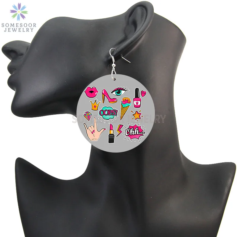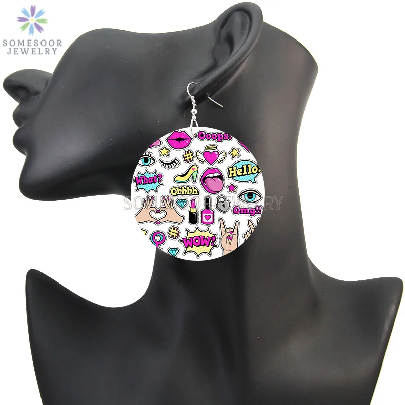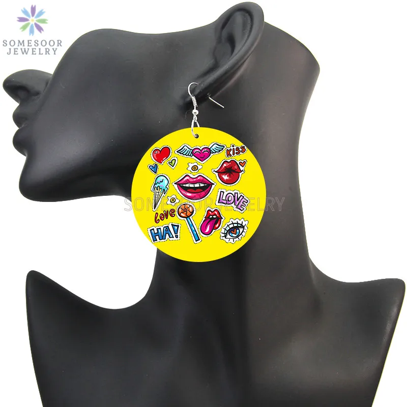 SOMESOOR модные XOXO 1920 поп деревянные висячие серьги объятия целуи пузырьки наклейки дизайн печать висячие ювелирные изделия для женщин Подарки