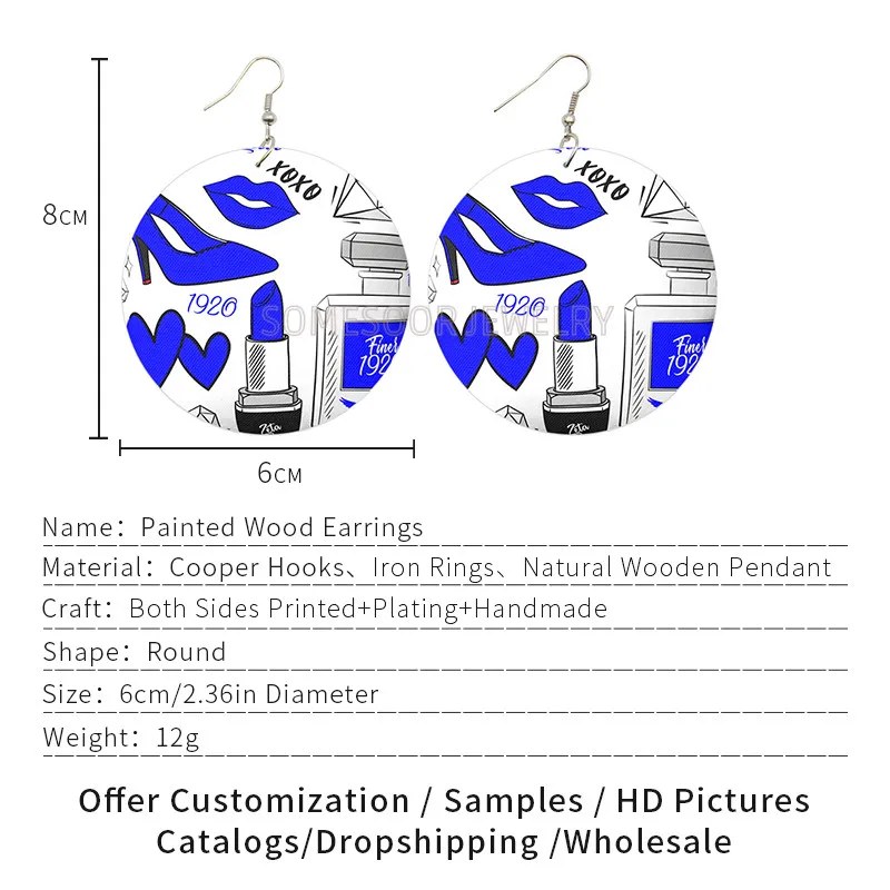 Деревянные висячие серьги SOMESOOR с двусторонним принтом Zeta Phi ...