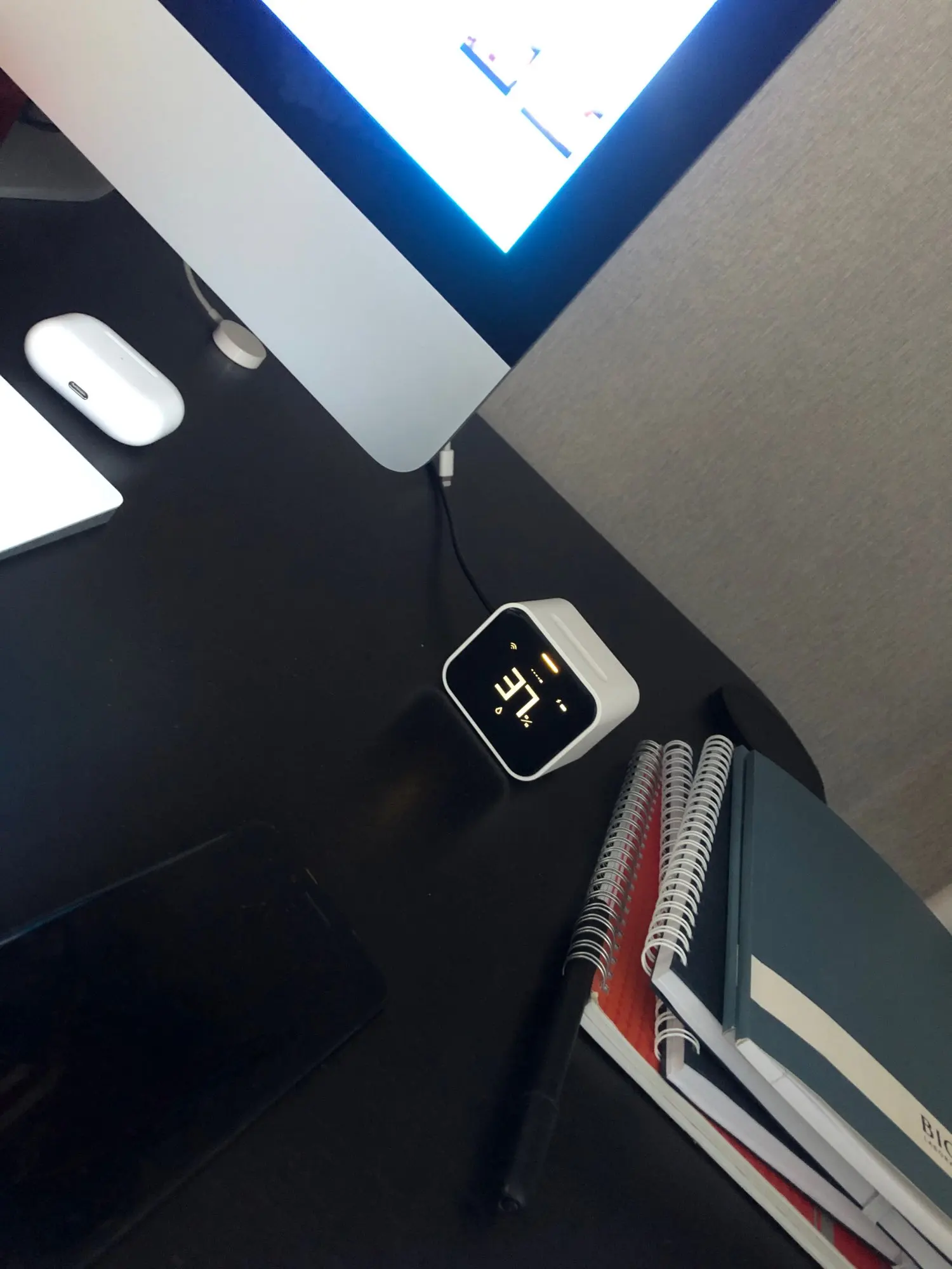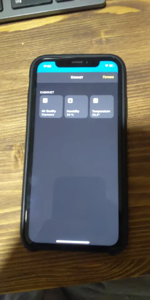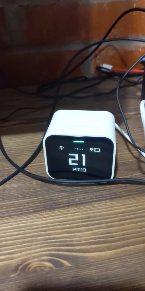 Небольшое, аккуратно выполненное устройство. Тихо жужжит, показывает цифры. Показания сравнить не с чем, но готовку на кухне чует, на открытые форточки тоже реагирует. Можно завести или в Mi Home, или в HomeKit. Сразу в оба, к сожалению, нельзя
