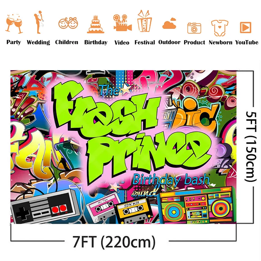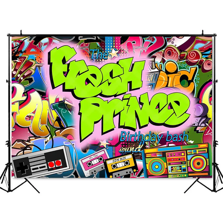 Fresh Prince День рождения фон в стиле хип-хоп фон с изображением граффити на стене 80s 90s, дня рождения и фотосессии фон портрет для детей с блестками для фотосессии на день рождения
