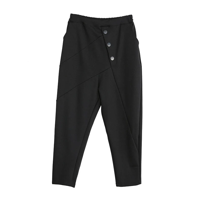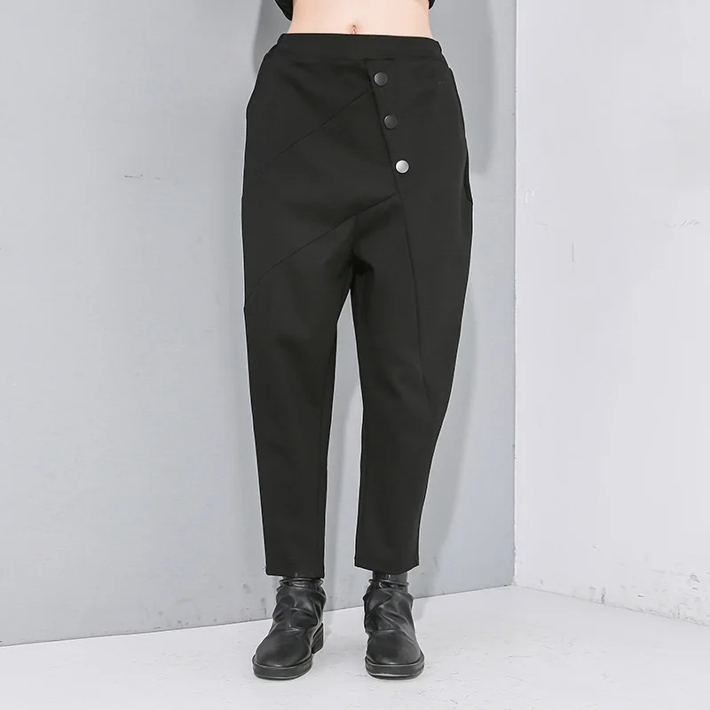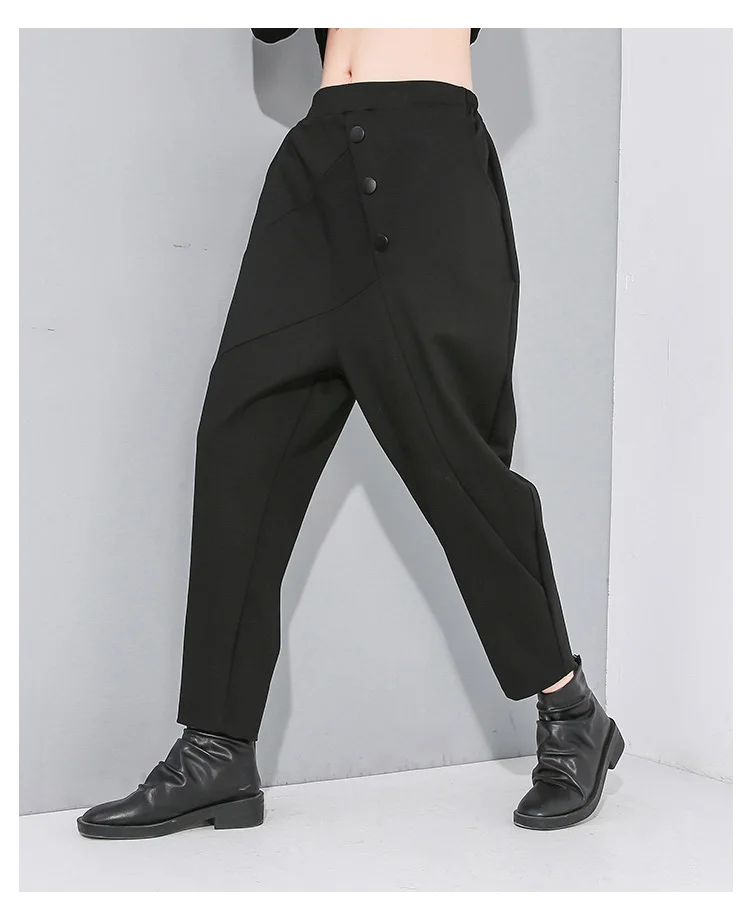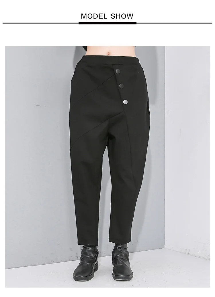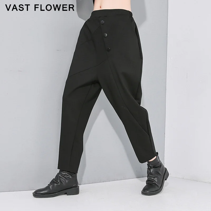 Брюки-султанки женские с завышенной талией, винтажные повседневные свободные штаны на пуговицах, модная уличная одежда, черные, весна-осень 2021