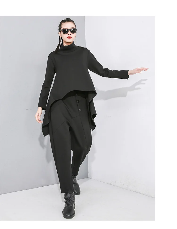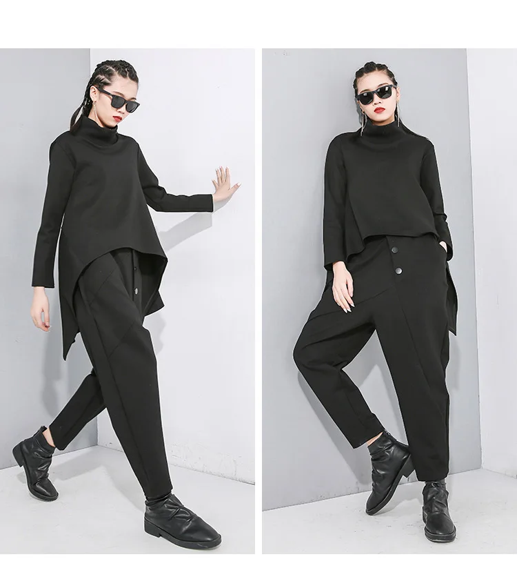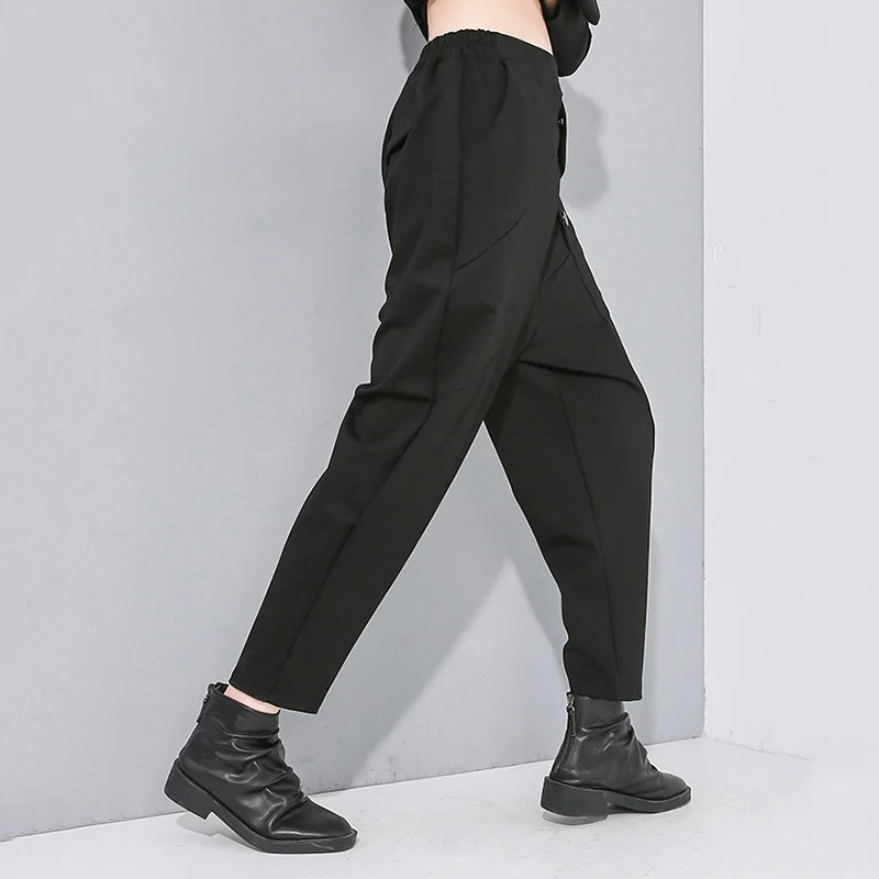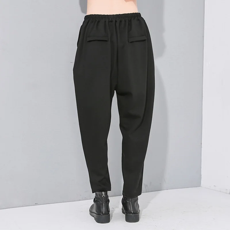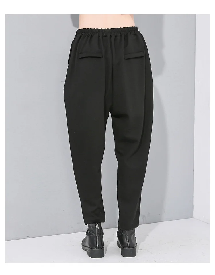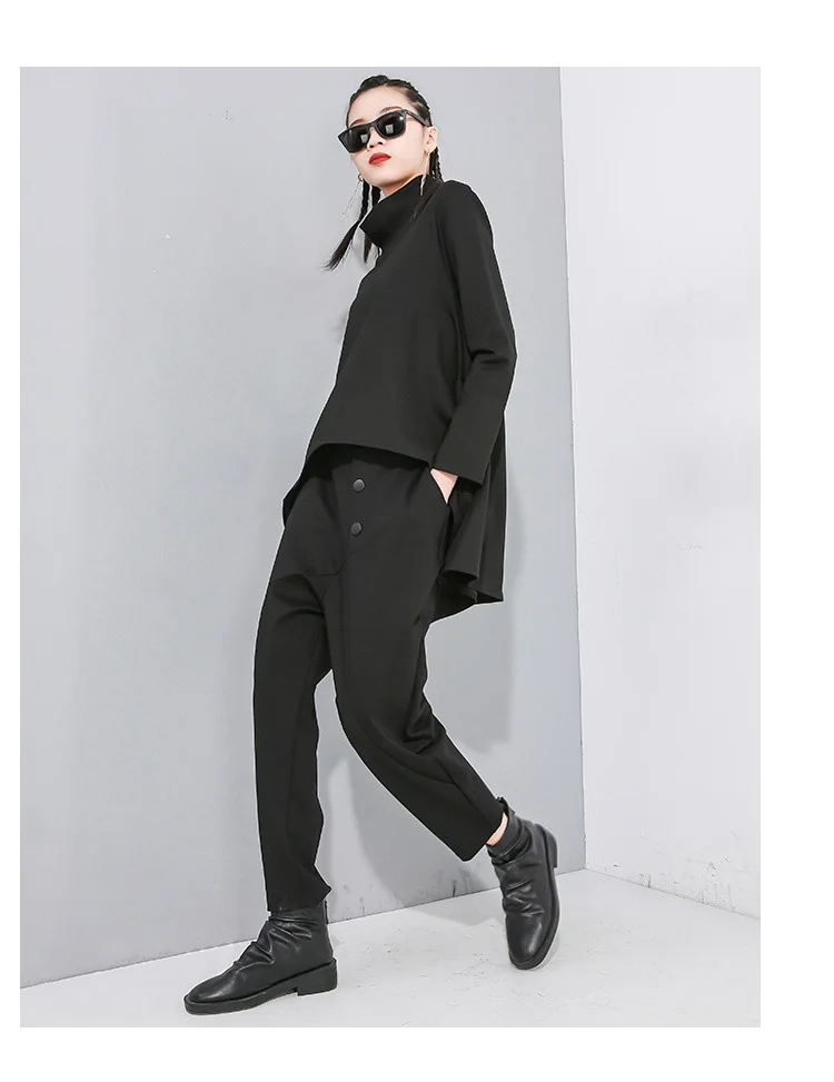 Брюки-султанки женские с завышенной талией, винтажные повседневные свободные штаны на пуговицах, модная уличная одежда, черные, весна-осень 2021