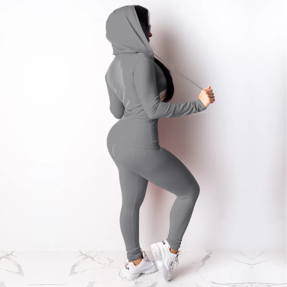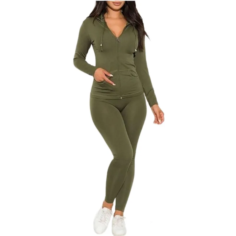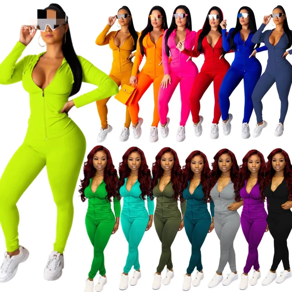 Женский спортивный костюм из двух предметов, куртка с длинным рукавом, капюшоном, карманами на молнии + леггинсы, эластичная одежда для тренировок