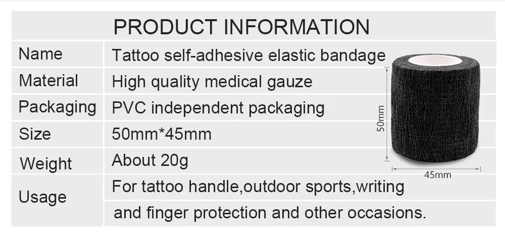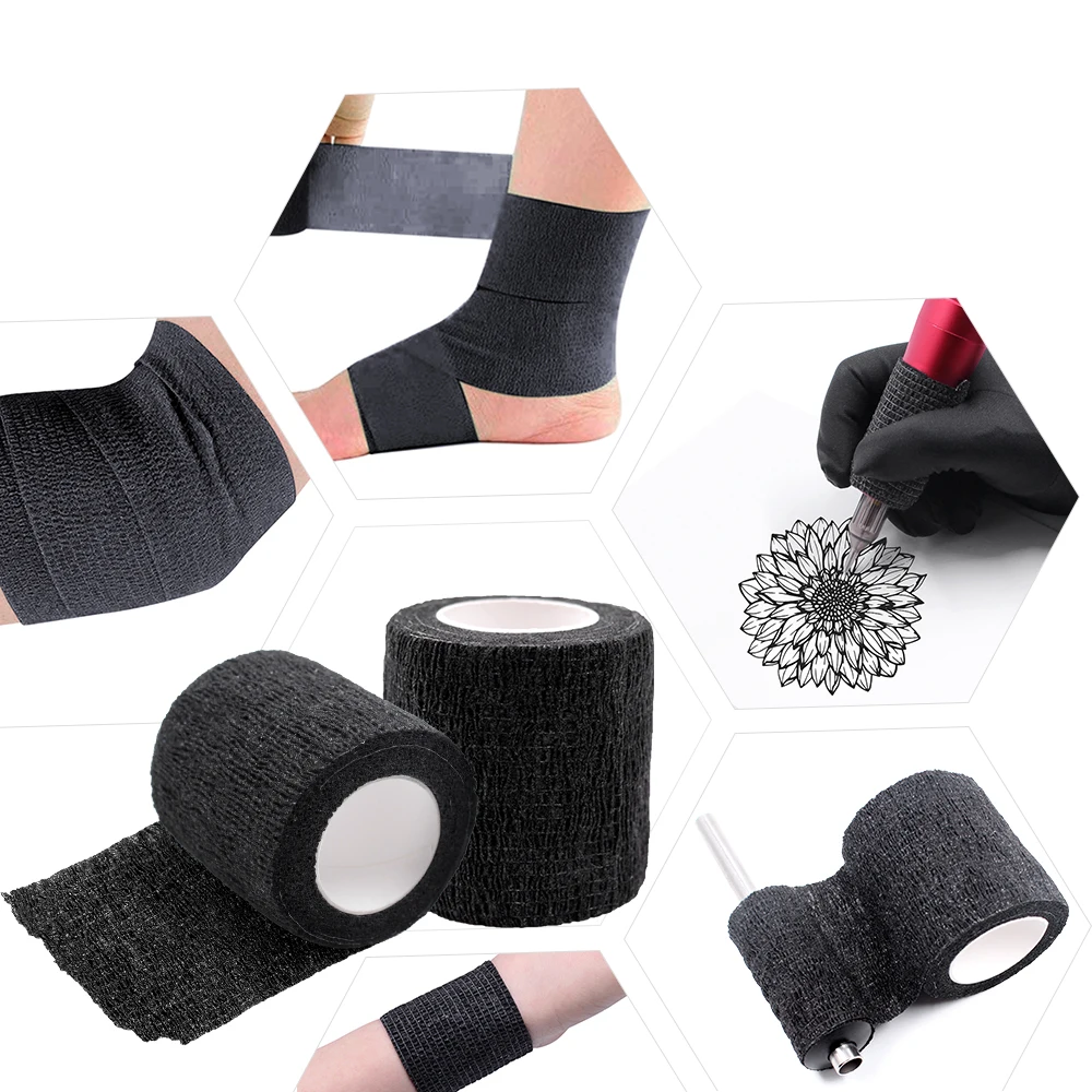 Черный самоклеющийся эластичный бандаж одноразовое покрытие рукоятки машинки для татуажа лента обертка эластичный тату-бандаж в рулонах для тату-машины