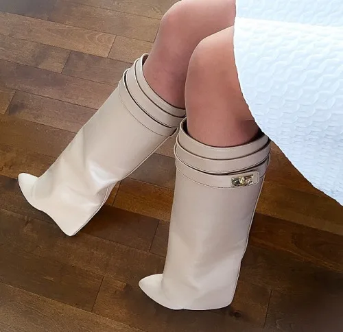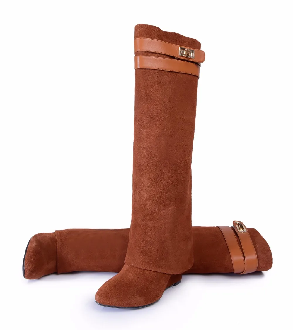 Женские сапоги на танкетке Shark Lock, ботфорты из натуральной кожи...