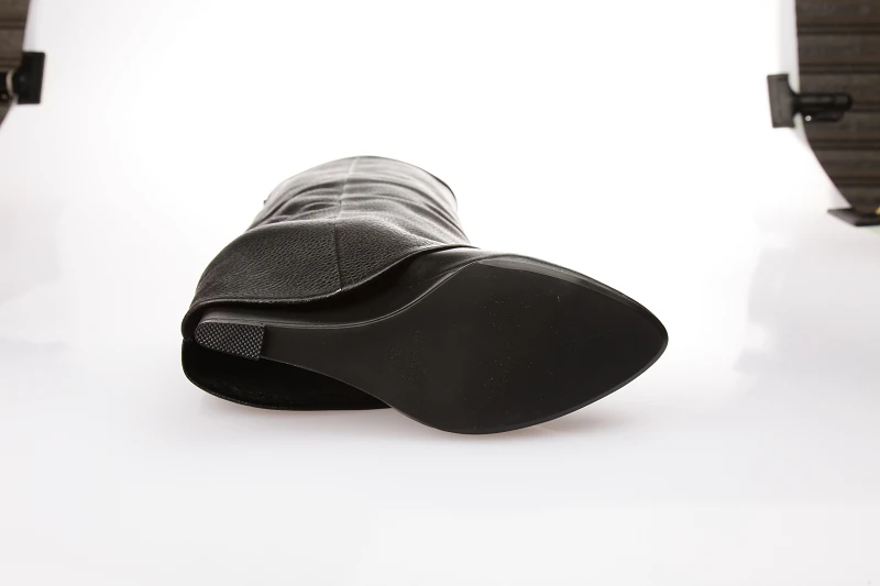 Женские высокие сапоги до колена, из натуральной кожи, с острым носком