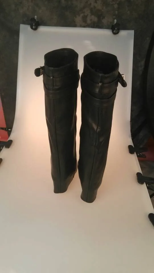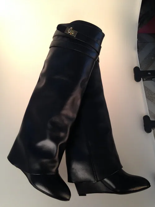Женские сапоги на танкетке с металлическим замком Акула, ботфорты с...