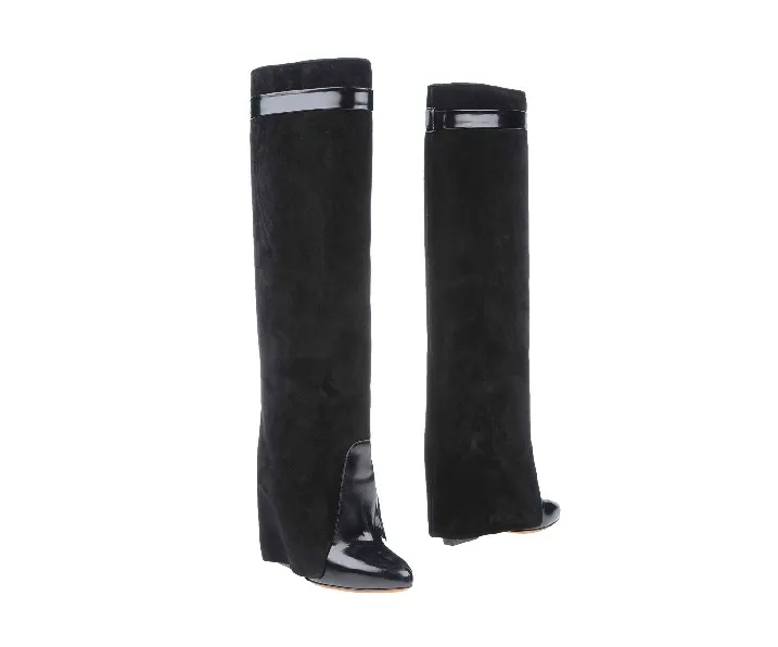 Женские сапоги на танкетке с замком Акула, черные складные сапоги д...