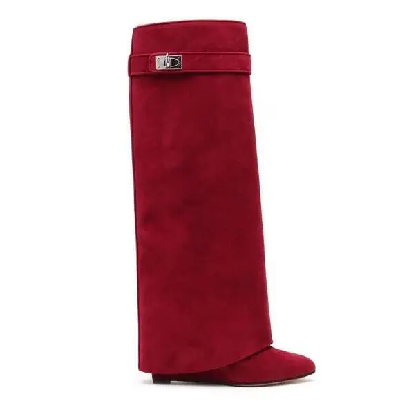 Женские замшевые сапоги на танкетке, с острым носком, размер 42