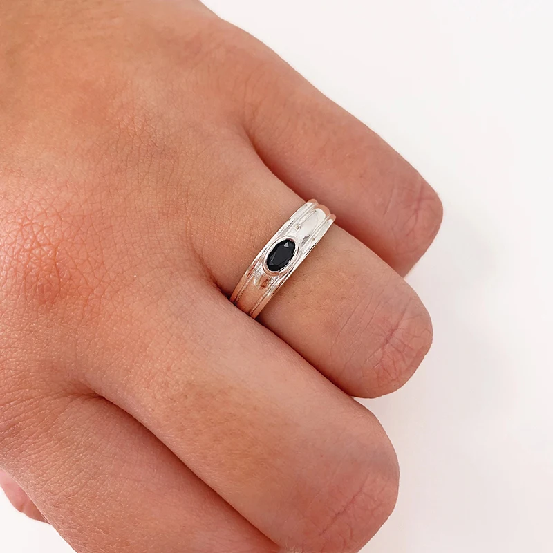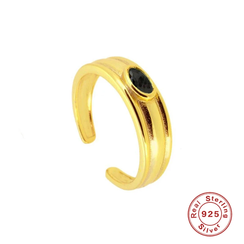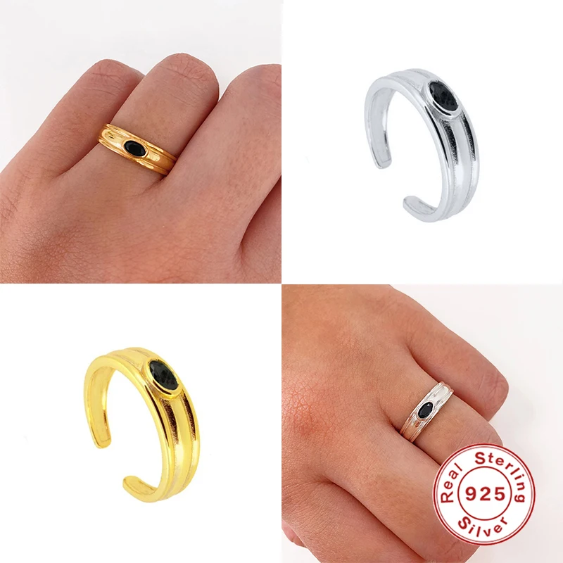 Автоклав реальные 925 пробы SilverSimple гладкий черный циркон кольцо для женщин Изысканная дамские кольца из серебра 925 пробы, ювелирные изделия anillos