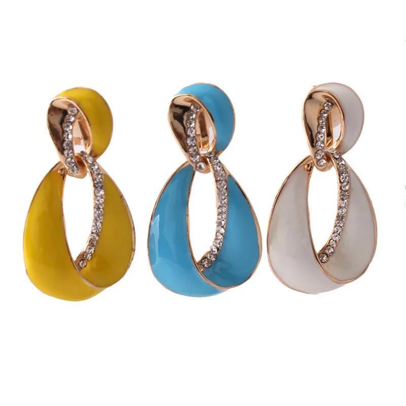 WENHQ европейские и американские эмалевые стразы серьги-клипсы без пирсинга Роскошные модные геометрические серьги-каффы золотого цвета