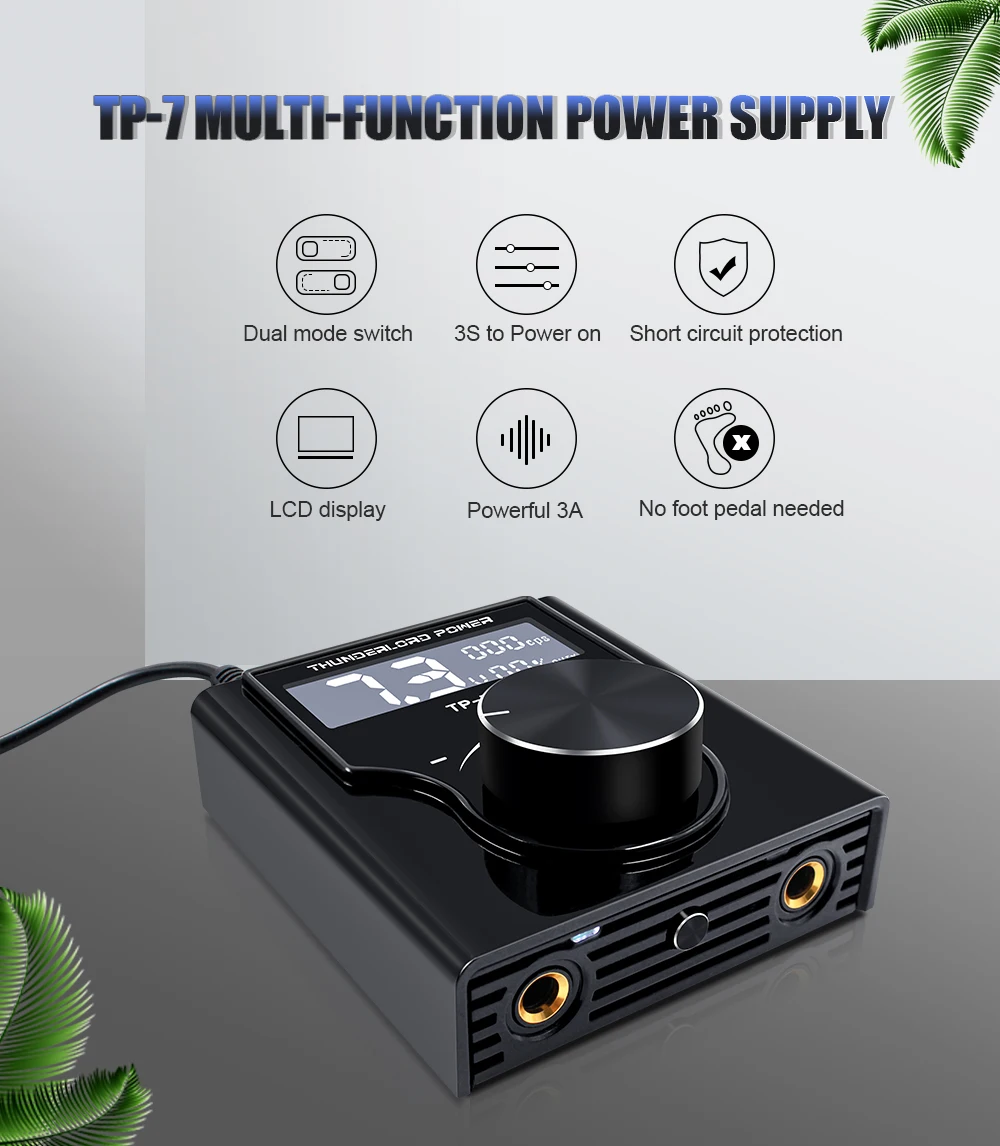 Новая татуировка Питание TP-7 цифровой ЖК-дисплей татуировки Источники питания Dual 3A силовым устройством для макияжа Татуировки Ручка поставок