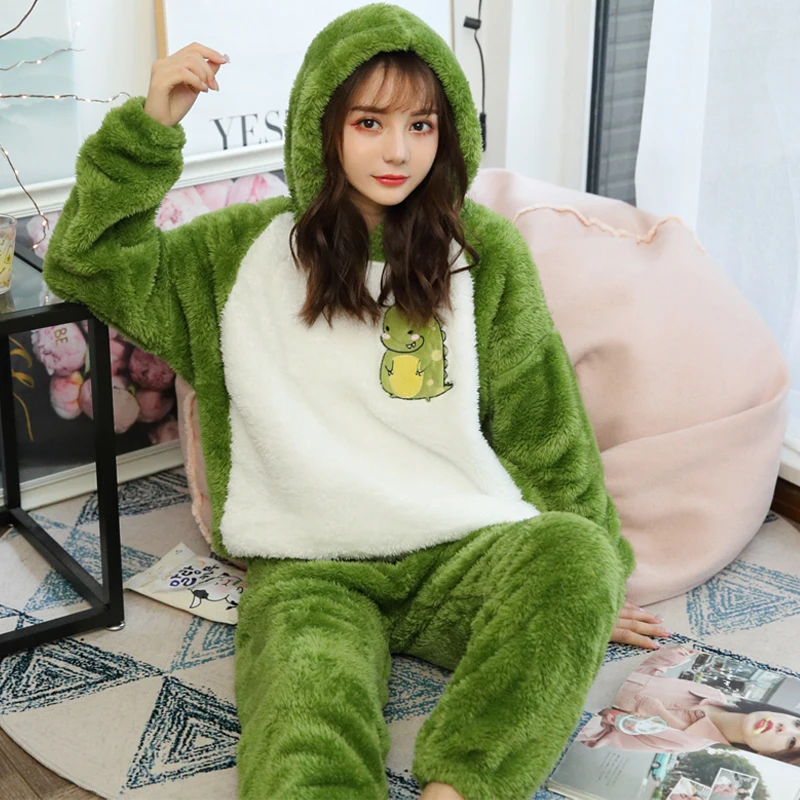 Зимняя пижама из кораллового флиса 2021, Женский плотный теплый фла...