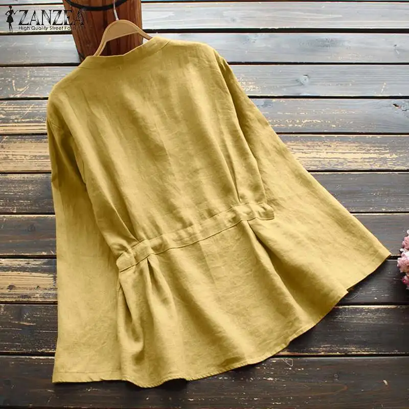 Свободные пуговицы топы ZANZEA женские Однотонные блузки осень V об...