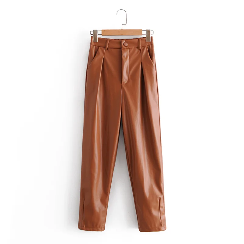 2020 новые свободные брюки из искусственной кожи, женские модные брюки из искусственной кожи, женские элегантные брюки на молнии с карманами и пуговицами, женские брюки