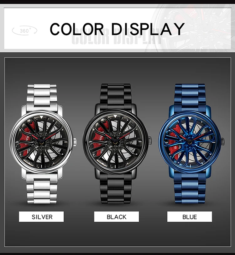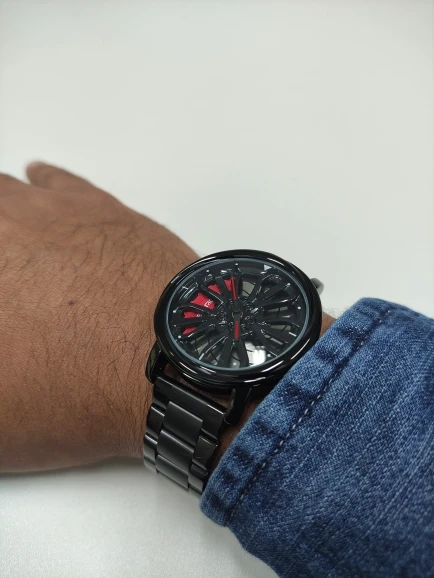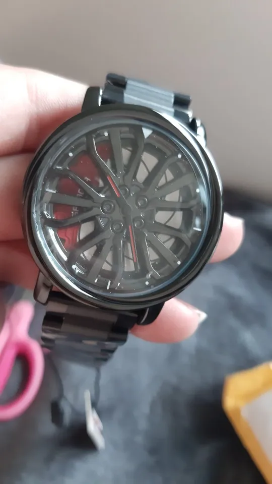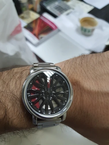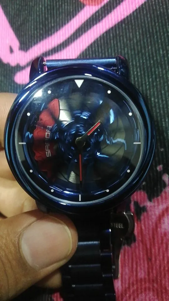 Внутри колесо крутится и это очень бесит, по началу, потом привыкаешь. Темно-красные стрелки на синем циферблате видно не очень хорошо, но и к этому привыкаешь, хотя теперь понимаю, что лучше другое сочетание взял бы. А сами часы смотрятся очень круто, как на картинке, собственно. Доставка до Москвы за 10 дней, продавцу респект и уважуха!))